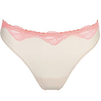 String branché en microfibre douce imprimée d'un délicat motif plumetis et galon dentelle de couleur vive à la taille. L'échancrure haute allonge la jambe et les fesses sont découvertes, pour un look sexy. Microfibre et dentelle.