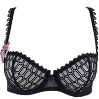 Balcony bra from the Flower Power women's lingerie collection by the French brand Louisa Bracq is available from cup B to cup E and from size 32 to size 44 for plus size lingerie. Balcony bra Flower Power by the brand Louisa Bracq is available in 1 color: Black. Designe & material: Floral Embroidery..